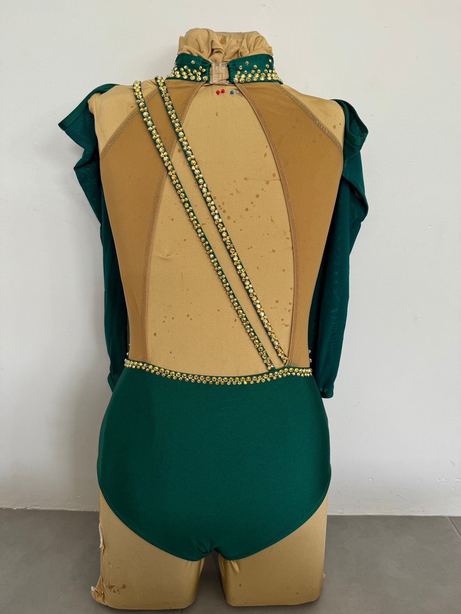 Unveil your inner enchantment with this captivating Forest Green costume, a stunning masterpiece that combines elegance with a touch of sparkle. Crafted from rich, deep green fabric, this costume exudes a mysterious allure, perfect for standing out in any event. The design is elevated with intricate gold stones that dazzle under the light, creating a mesmerizing shimmer with every movement. Whether you’re stepping onto the stage or attending a special occasion, this costume promises to make you feel both regal and radiant.