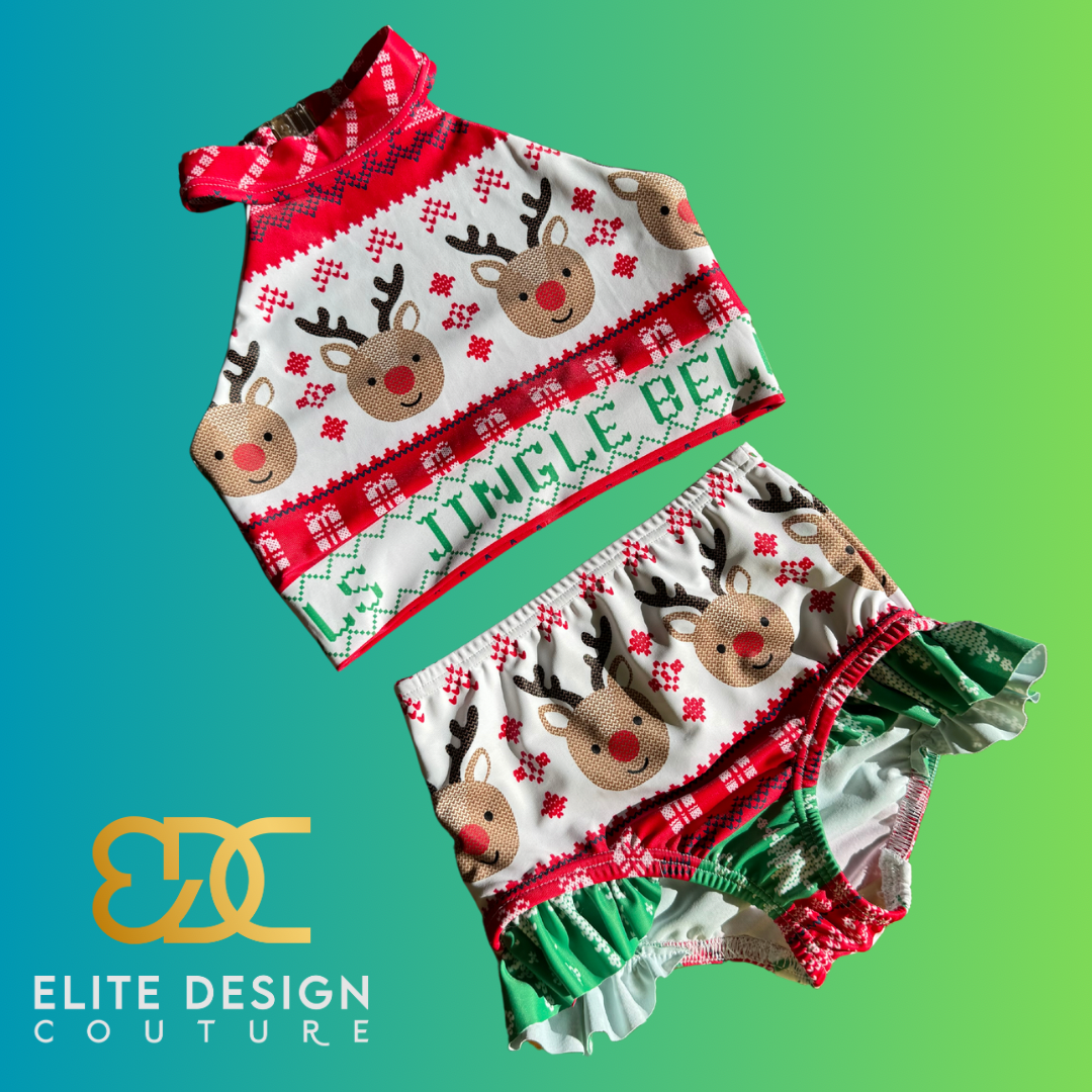 Child’s dancewear set. Fully lined crop top and briefs are lined in the front. Bikini clip closure at the neck. Available for immediate ship or collection.