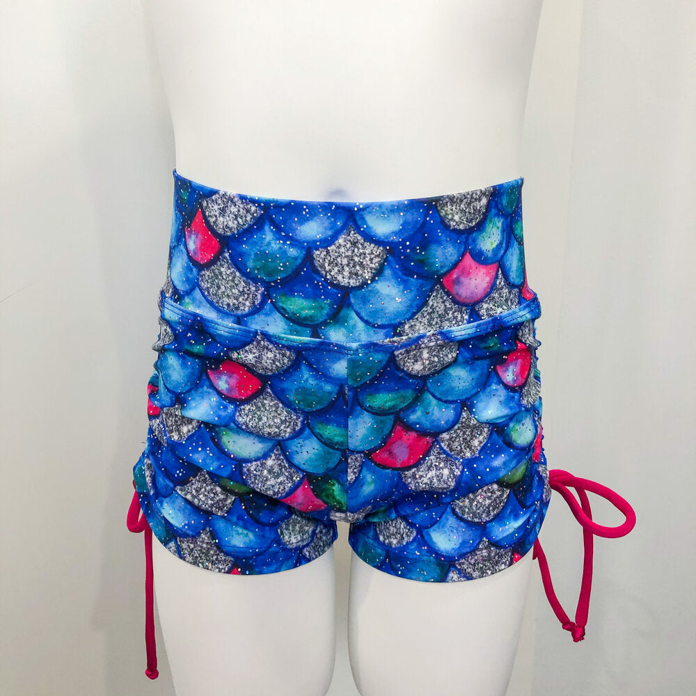 Feel fit and fabulous in our tie rouched shorts. High waisted with 2 ties down each side. Switch from shorts to brief like style by tightening the ties on the side. These shorts look and feel absolutely fabulous on!